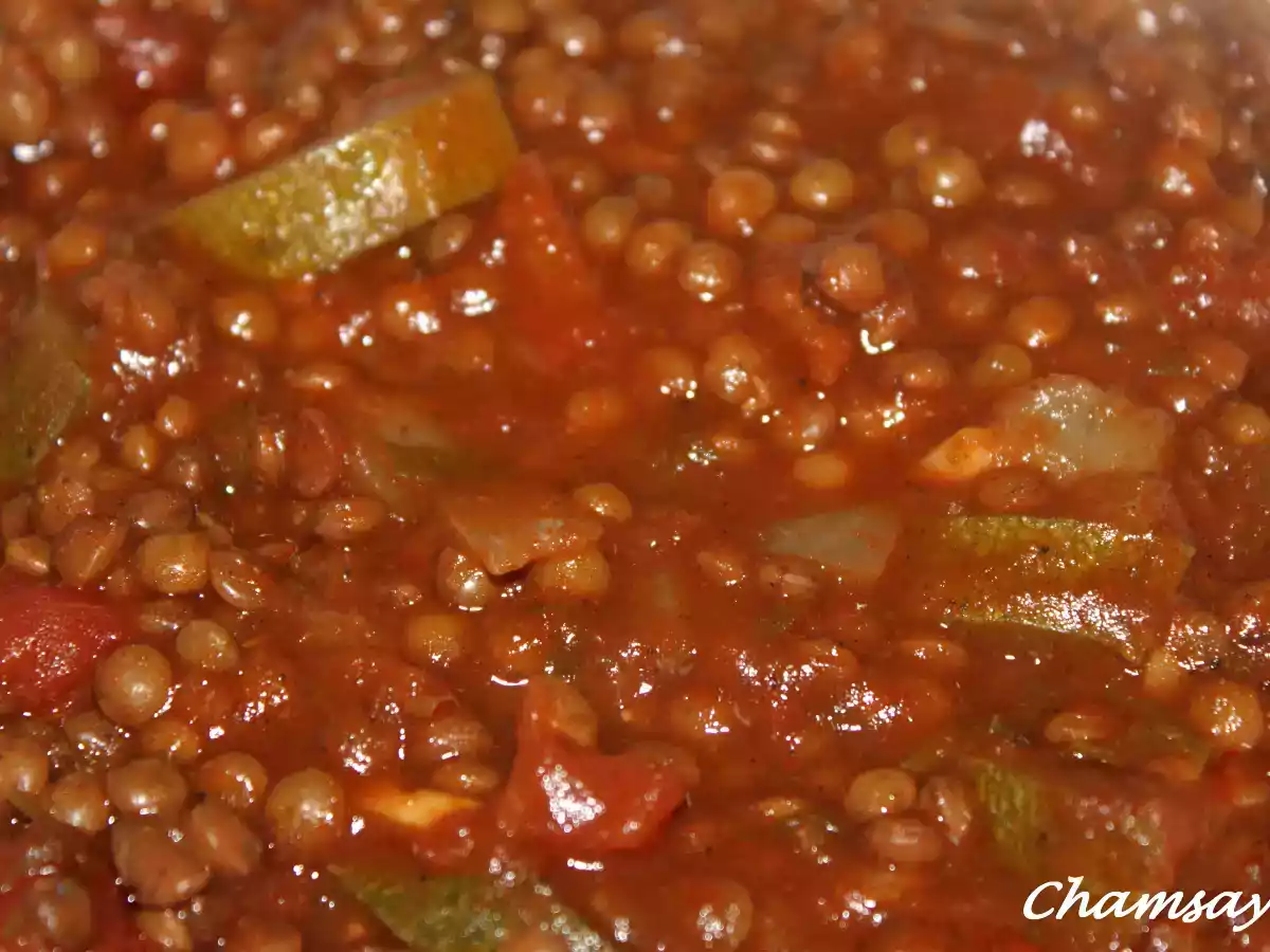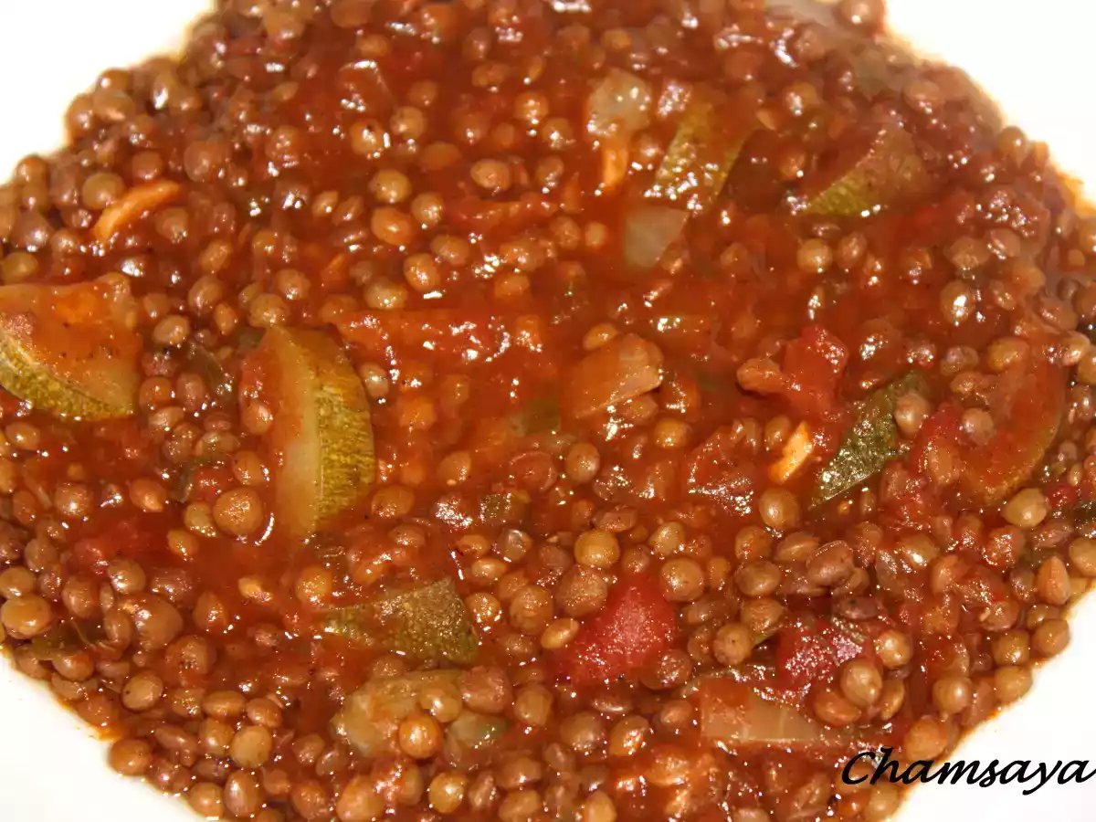 Lentilles version marocaine PrécédentSuivant Platmoyen45 min140 Kcal Envoyer cette recette à un ami Imprimer cette page Poser une question à l'auteur Publier votre photo de cette recette Ingrédients 4 250 g de lentilles vertes du Puy 1 échalote 1 courgette 2 gousses d'ail 1 petit bouquet de coriandre et persil 1 tomate 1 cas de concentré de tomates 1 cas d'huile d'olive 1 cc sel 1 cc cumin 1 cc paprika 1/2 cc poivre Coût estimé: 2.51Euros€ (0.63€/part)