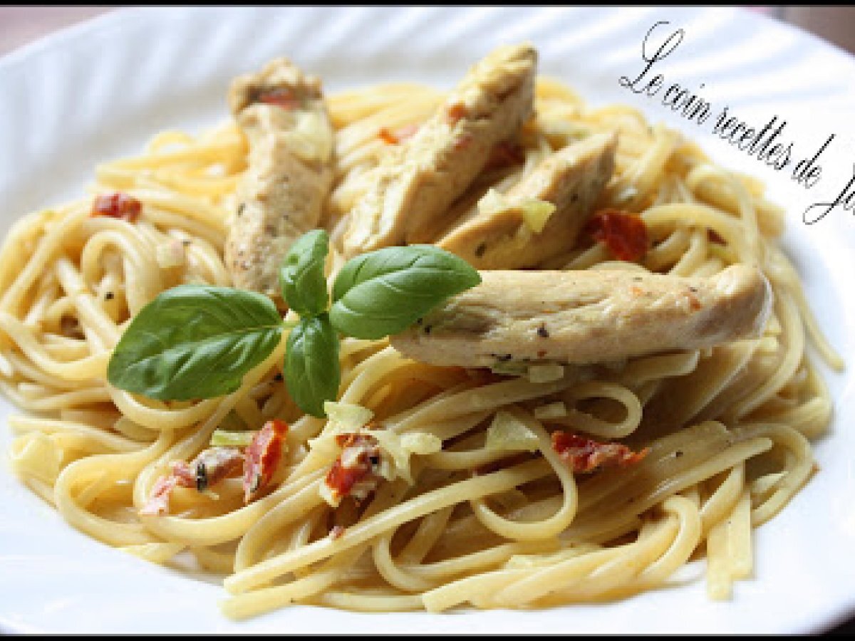 LINGUINE AU POULET ET TOMATES SÉCHÉES Platfacile35 min Envoyer cette recette à un ami Imprimer cette page Poser une question à l'auteur Publier votre photo de cette recette Ingrédients 1 375 g de linguine, au goût 2 poitrines de poulet, en lanières 1 cuillère à thé de fines herbes à l'italienne 1 oignon, haché 1 branche céleri, haché finement 1 gousse d'ail hachée finement 1/4 tasse de vin blanc 1 tasse de crème 15%, épaisse 1 cuillère à soupe de pesto aux tomates, séchées 1 cuillère à thé de curry, au goût Sel Poivre Huile d'olive, pour la cuisson Beurre, pour la cuisson