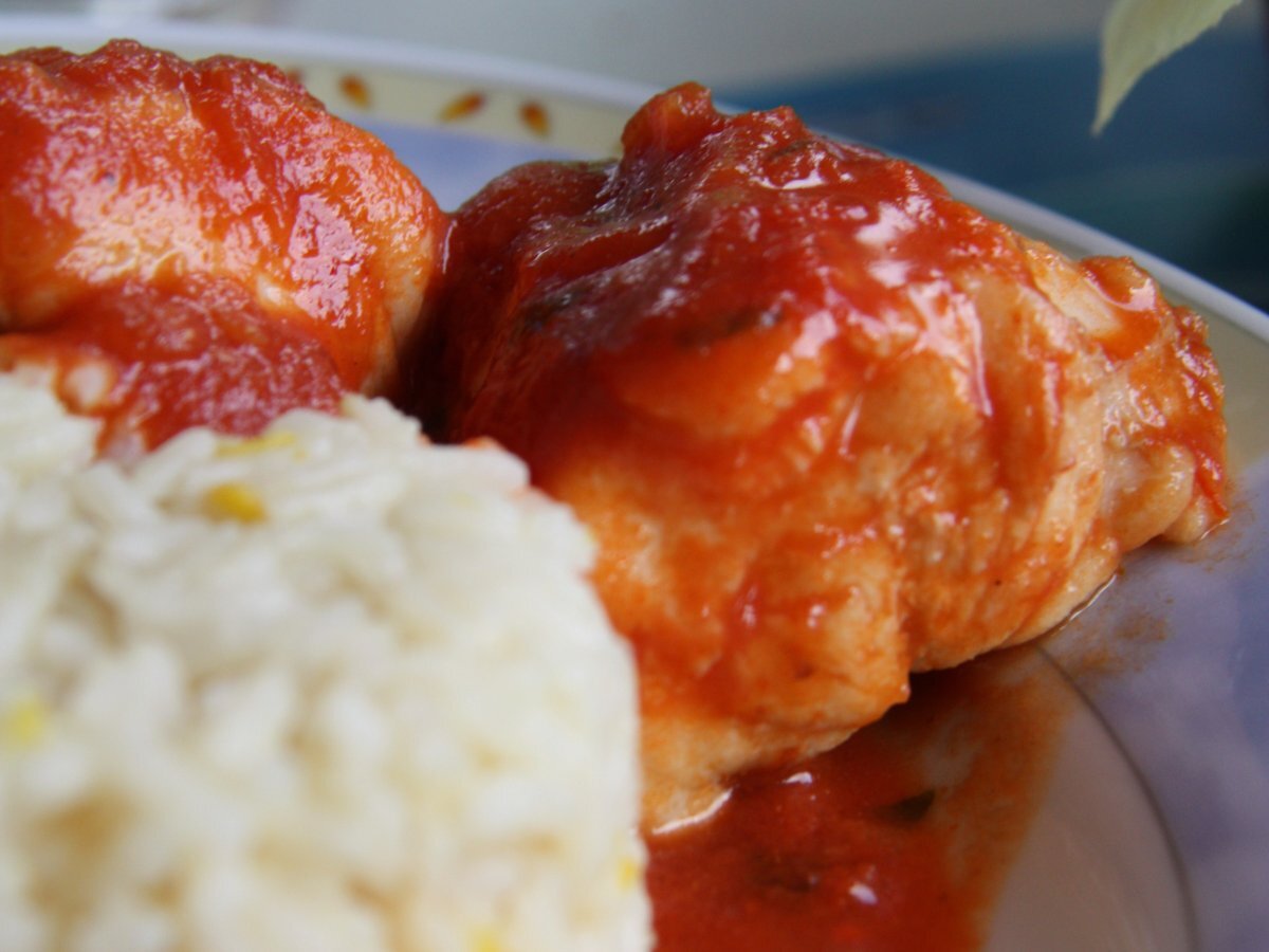 - Goûtez et rectifiez l'assaisonnement si besoin. Remettez alors les morceaux de poisson et faites cuire encore 10 minutes. Servez avec un petit riz (pour moi, un risotto aux poivrons)