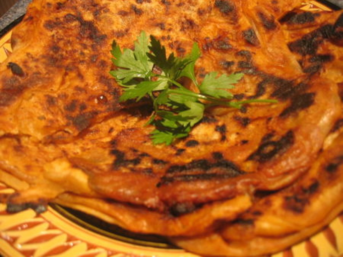 M'semmen farci à la sauce tomate Platfacile32 min386 Kcal Envoyer cette recette à un ami Imprimer cette page Poser une question à l'auteur Publier votre photo de cette recette Ingrédients 4 2 oignons finement émincés 1 cuillère à soupe de persil + coriandre 2 tomates coupé en petits cube 1/2 cuillère à soupe de tomate concentré 1/2 verre huile d'olive 1 cuillère à café de sel poivre curcuma cumin gingembre Ingrédients pour les m'semmen : 500 g de semoule fine 1 pincé de sel de l'eau tiède ( environ un grand verre) Coût estimé: 3.21Euros€ (0.8€/part)