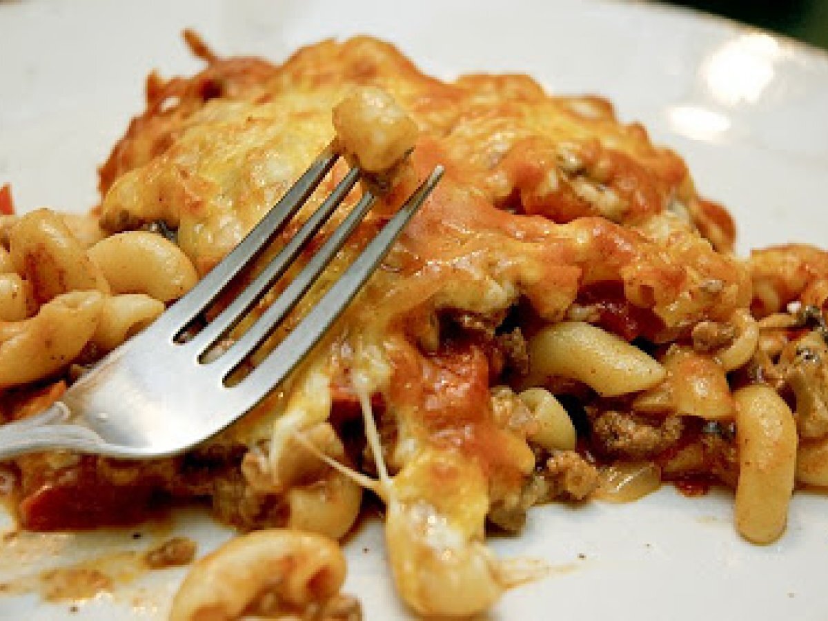 Macaroni à la viande crémeux gratiné