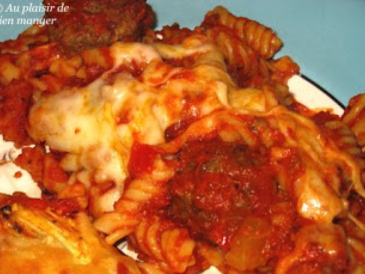 Macaroni aux boulettes de veau votez maintenant Platfacile1 h 10 m Envoyer cette recette à un ami Imprimer cette page Poser une question à l'auteur Publier votre photo de cette recette Ingrédients 2 1 paquet de macaronis de 500 g 450 g (1 lb) de veau haché mi-maigre 1 oeuf battu 1 cuillère à soupe de persil haché 2 cuillères à soupe de ciboulette hachée 1 cuillère à thé d'ail haché 1/4 tasse de chapelure 1/4 tasse de parmesan râpé sel et poivre au goût 2 cuillères à soupe d'huile d'olive Sauce : 1 boîte de sauce tomates de 680 ml 2 cuillères à thé d'ail haché 2 cuillères à soupe de basilic haché 1 tasse de fromage suisse râpé