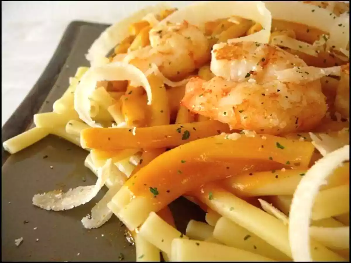 Macaronis à la bisque de gambas PrécédentSuivant Platfacile55 min Envoyer cette recette à un ami Imprimer cette page Poser une question à l'auteur Publier votre photo de cette recette Ingrédients 3 1 cuillère à soupe d'huile d'olive 1 carotte épluchée 1 oignon épluché 12 gambas entières non décortiquées 2 bouchons d'Armagnac 8 cl de vin blanc 3 cl de Noilly Prat 50 cl d'eau + 1 cuillère à soupe de fumet de poisson déshydraté 2 cuillères à soupe de concentré de tomates 1 cuillère à soupe de jus de citron 1 cuillère à soupe de persil 1/2 cuillère à café de curcuma en poudre 10 cl de crème fraîche entière 1 cuillère à soupe de maïzena diluée dans 2 cuillères à soupe d'eau macaronis parmesan