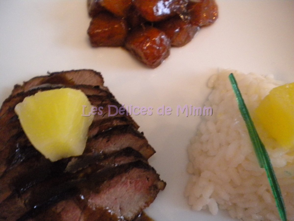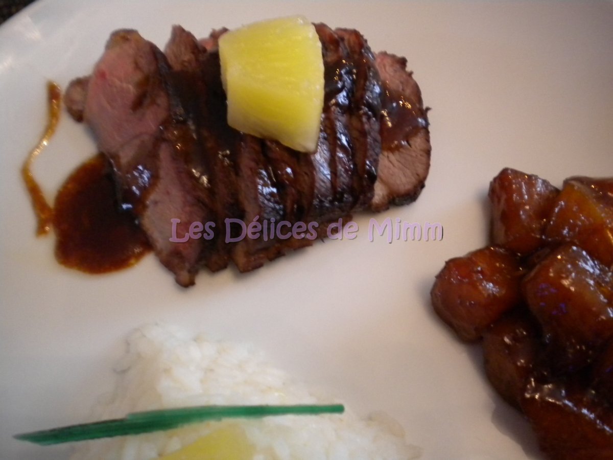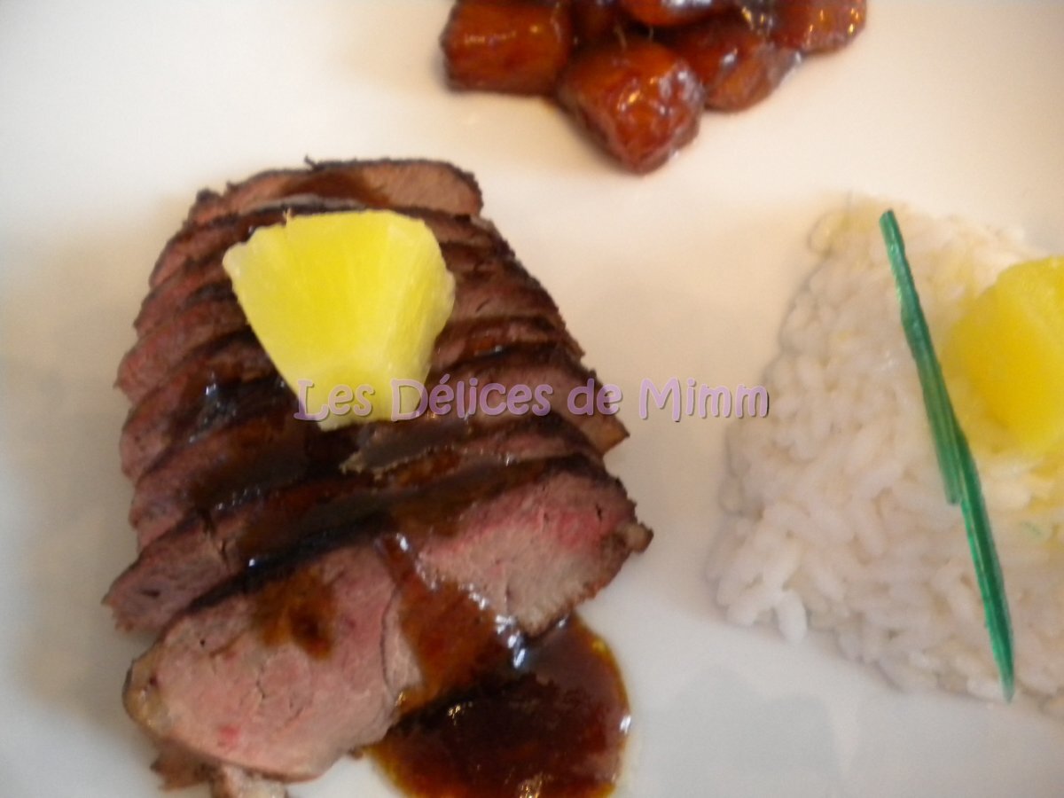 Magret de canard à l'ananas flambé au rhum PrécédentSuivant Platmoyen30 min440 Kcal Envoyer cette recette à un ami Imprimer cette page Poser une question à l'auteur Publier votre photo de cette recette Ingrédients 4 2 magrets de canard 1 boîte d'ananas au jus 5 c à s de sucre de canne 5 c à s de rhum sel et poivre 1 c à s de beurre