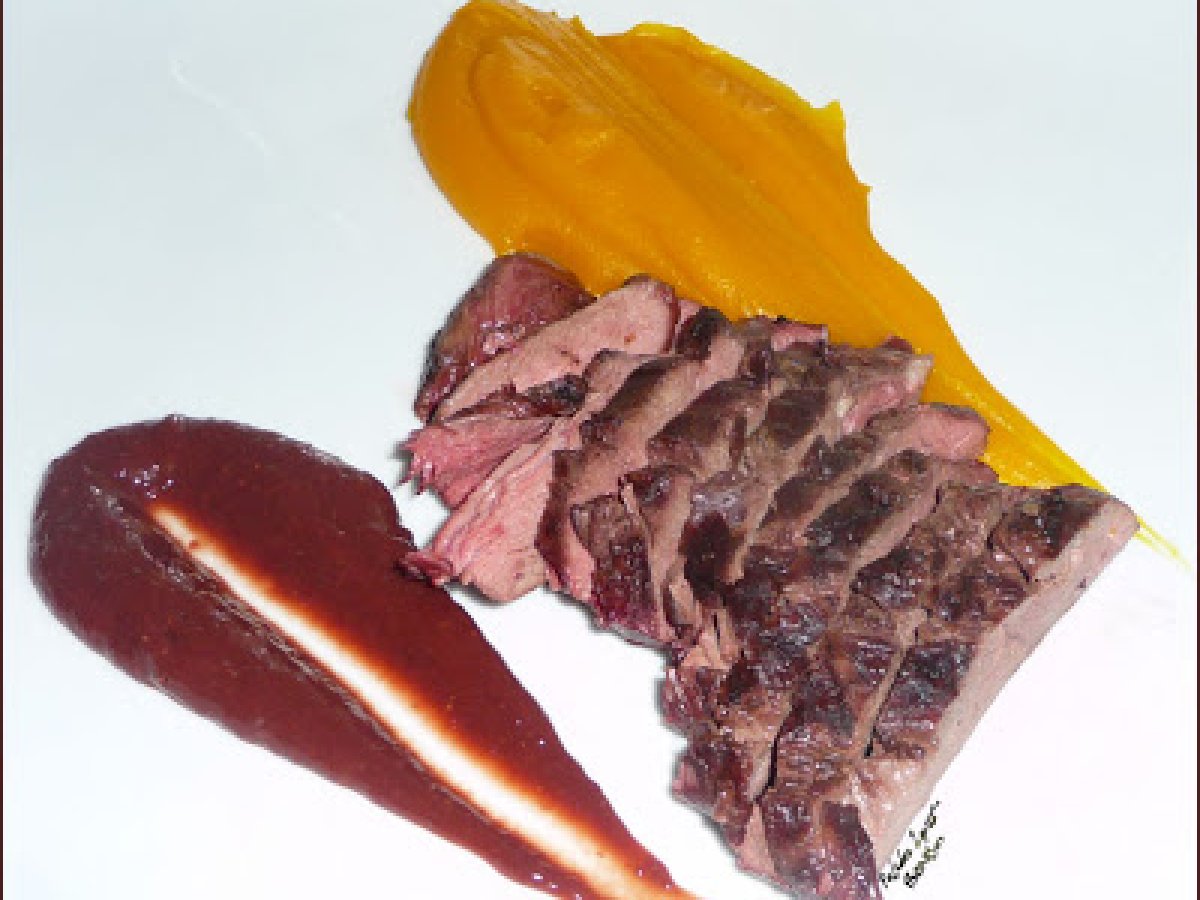 Magret grillé et ketchup à la fraise ... votez maintenant PrécédentSuivant Platfacile1 h 45 m Envoyer cette recette à un ami Imprimer cette page Poser une question à l'auteur Publier votre photo de cette recette Ingrédients 4 2 beaux Magrets de Canard 1 beau Potimarron QS Fond de Canard QS Huile de Noisette 250g de Fraises 10 cl de Vinaigre Balsamique 1 cuillère à soupe de Sucre 1 cuillère à soupe de Sauce Worcestershire 1 Echalote 5 cl de Vinaigre Balsamique + 5 cl de Vinaigre de Noix 10 grains de Poivre de Sichuan écrasés Sel et Poivre