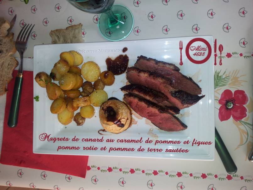 Magrets de canard au caramel de pommes et figues PrécédentSuivant Platmoyen50 min1094 Kcal Envoyer cette recette à un ami Imprimer cette page Poser une question à l'auteur Publier votre photo de cette recette Ingrédients 4 2 magrets de canard 4 pommes Cassonade 4 noisettes de beurre 4 figues sèches 200 ml de jus de pommes 3 c à s de calvados 2 morceaux de sucre