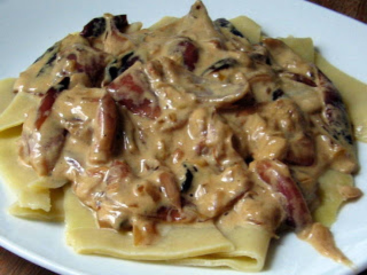 Laissez cuire la sauce à petit feu. Faites cuire les pâtes et poêlez les dans la sauce.