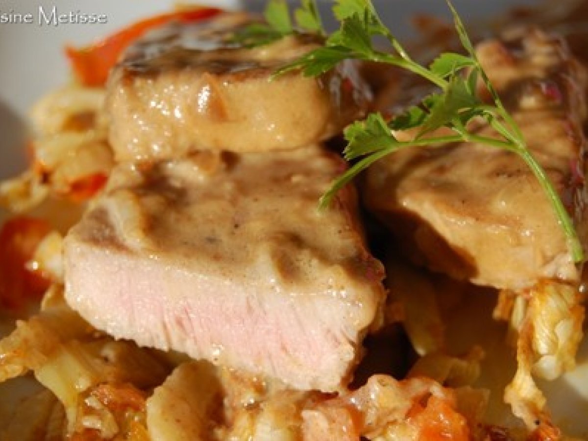 Médaillons de filet mignon, crème au porto et fenouil rôti