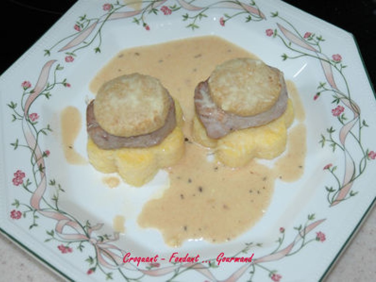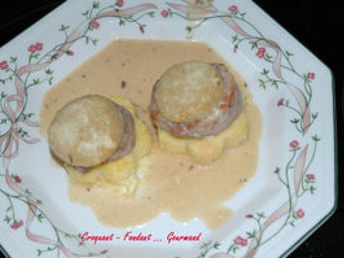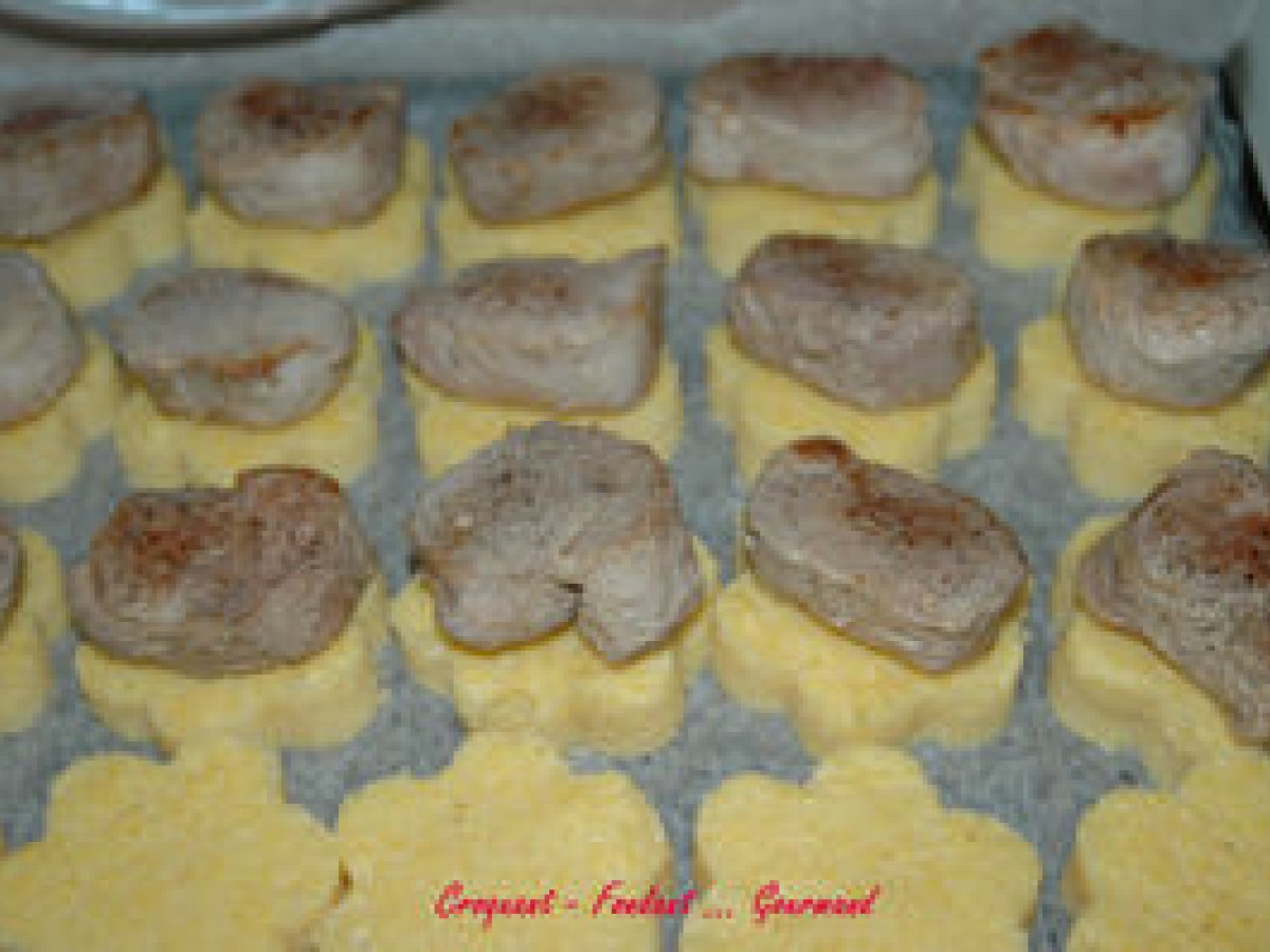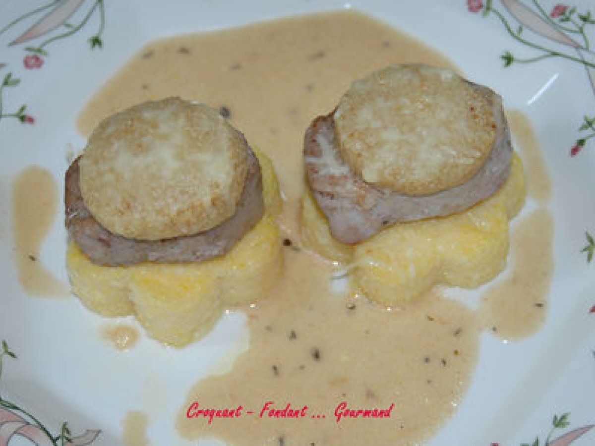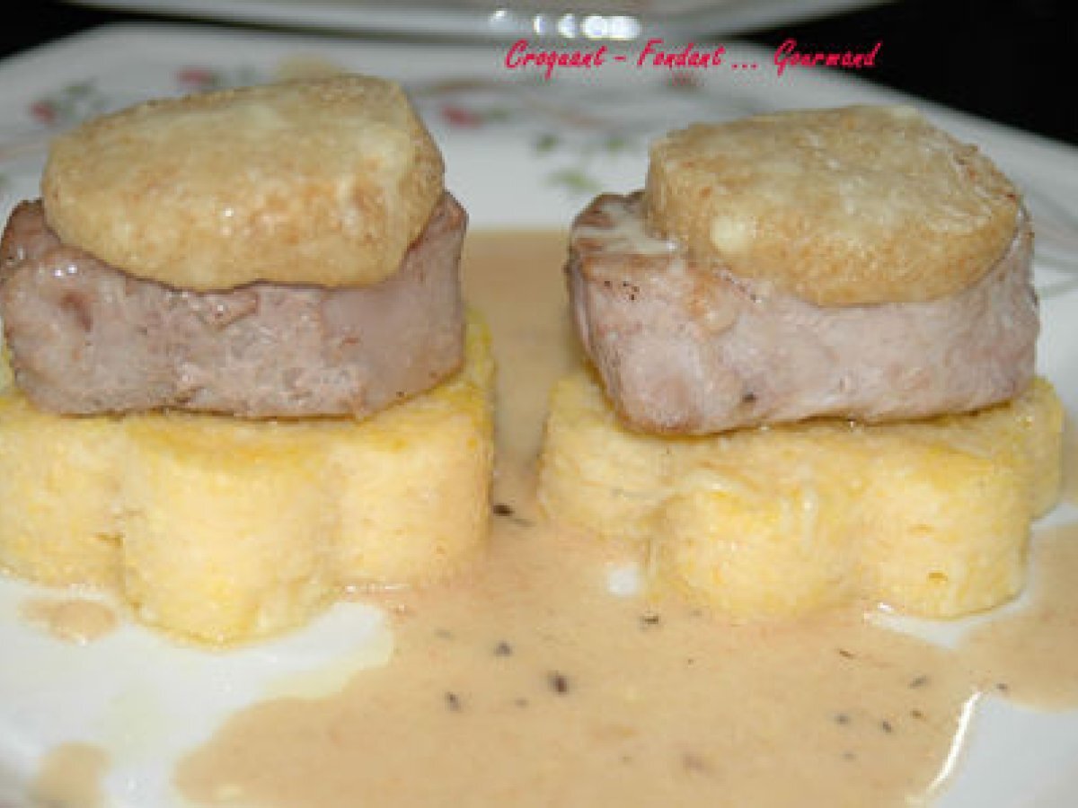 Médaillons de filet mignon et sa fleur de polenta votez maintenant PrécédentSuivant PlatDifficile1 h 55 m Envoyer cette recette à un ami Imprimer cette page Poser une question à l'auteur Publier votre photo de cette recette Ingrédients 8 Les Filets : 3 filets mignons de porc (1,250 kg) 100 g de beurre + 20 g 30 g de chapelure 100 g de comté râpé + 20 g sel & poivre du moulin La sauce: 150 g de vin blanc 150 g d'eau 4 cuillères à café de fond pour rôti 150 g de crème fraîche Les Fleurs de Polenta : 300 g de polenta à cuisson rapide 1 litre et ½ d'eau 3 cubes de bouillon de boeuf 120 g de comté râpé 20 g de beurre pour le plat