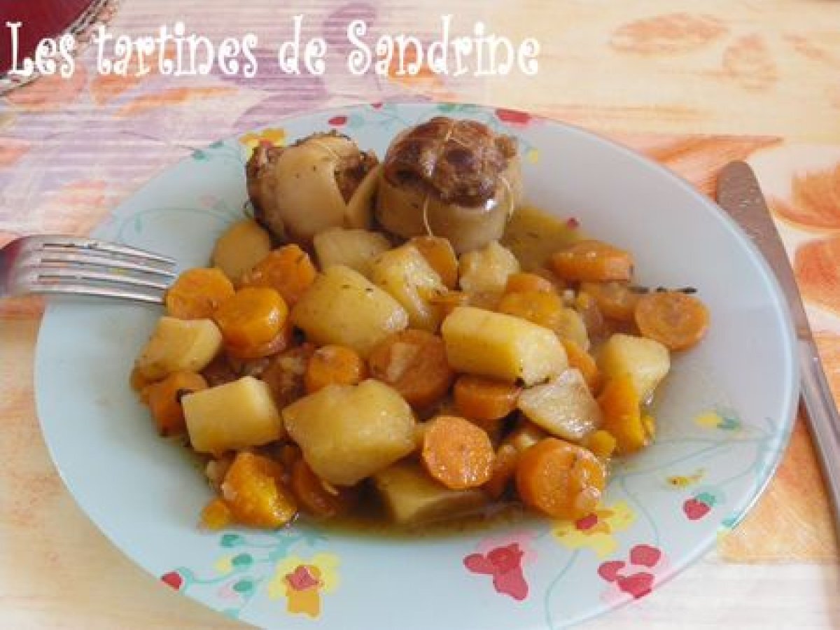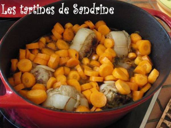 Mes paupiettes de veau aux carottes. Platfacile1 h 5 m Envoyer cette recette à un ami Imprimer cette page Poser une question à l'auteur Publier votre photo de cette recette Ingrédients 4 Des paupiettes de veau des carottes Un peu de matière grasse 2 ou 3 échalotes Du thym et du laurier Du poivre Du bouillon de légumes tout prêt Des pommes de terre pour les récalcitrants aux carottes