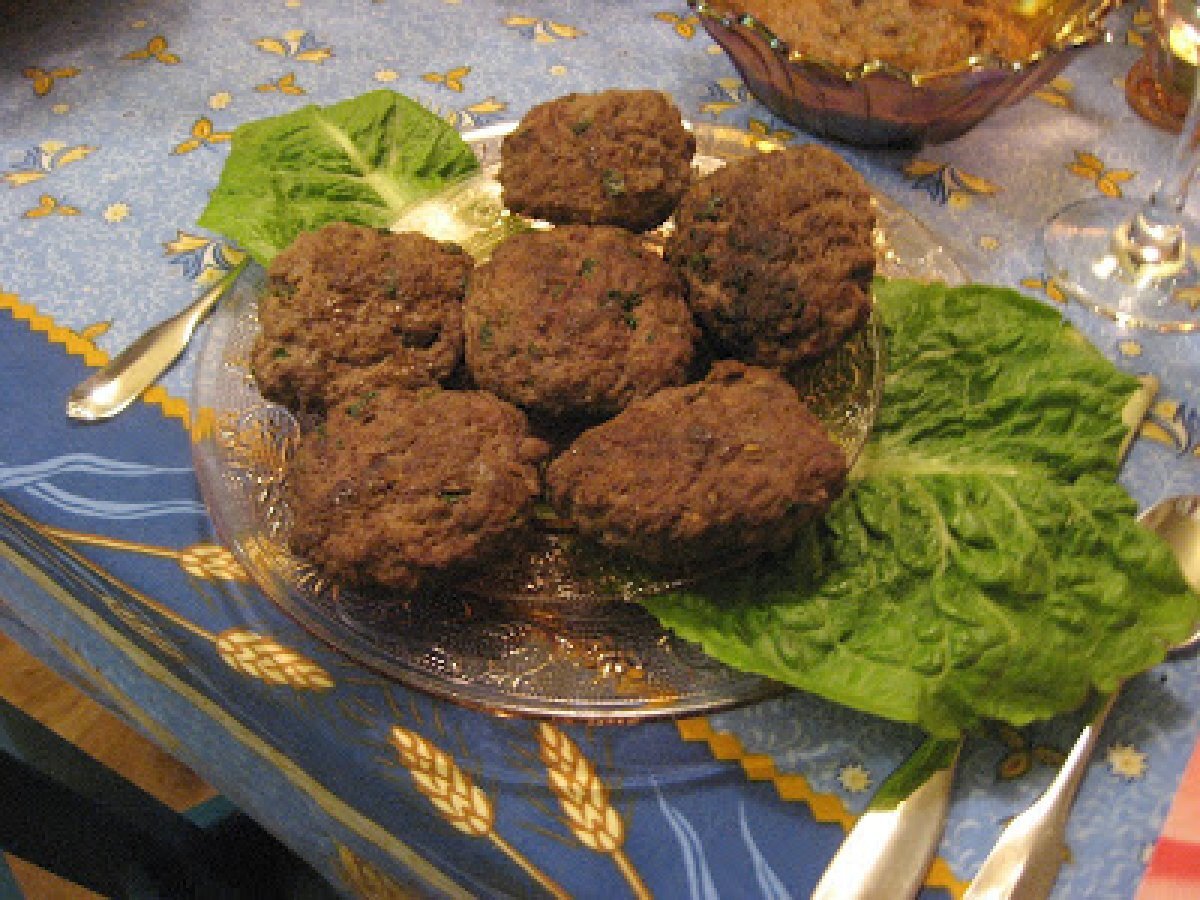 Fatayer (chausssons à la viande ou aux épinards) et galettes au za'atarKafta (galettes de viande hachée) et sauce tarator