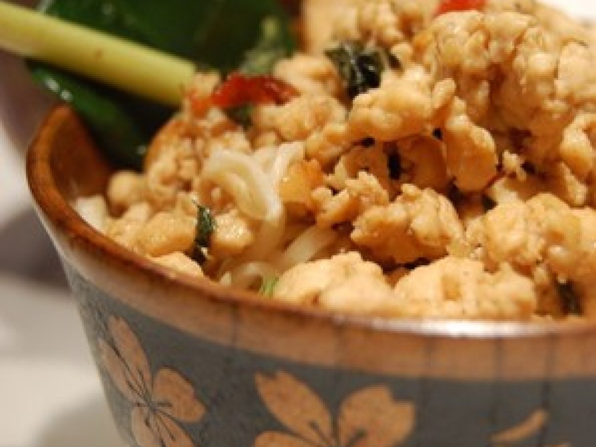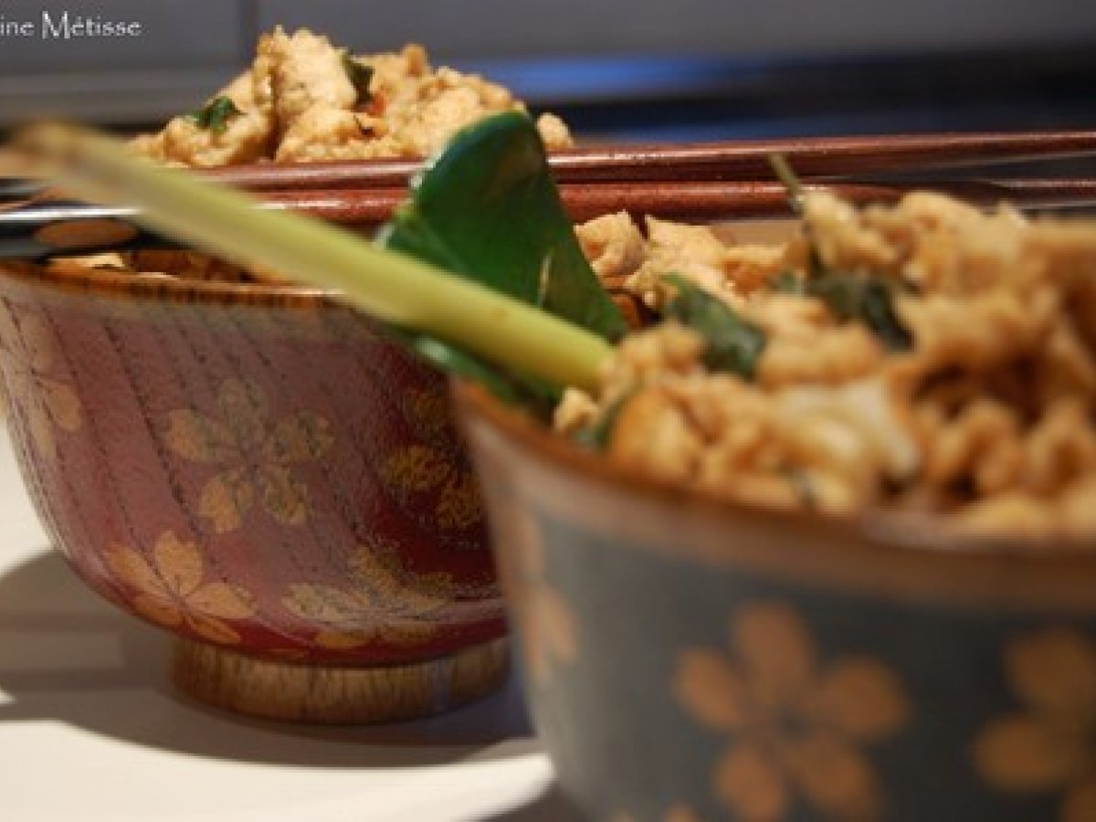 Encore un plat thaï!!! Encore du poulet au basilic!!!! Ce petit poulet est parfait pour une pause détente, vite prêt, facile, avec peu d'ingrédients, et délicieux, plein de saveurs que j'adore...!