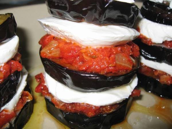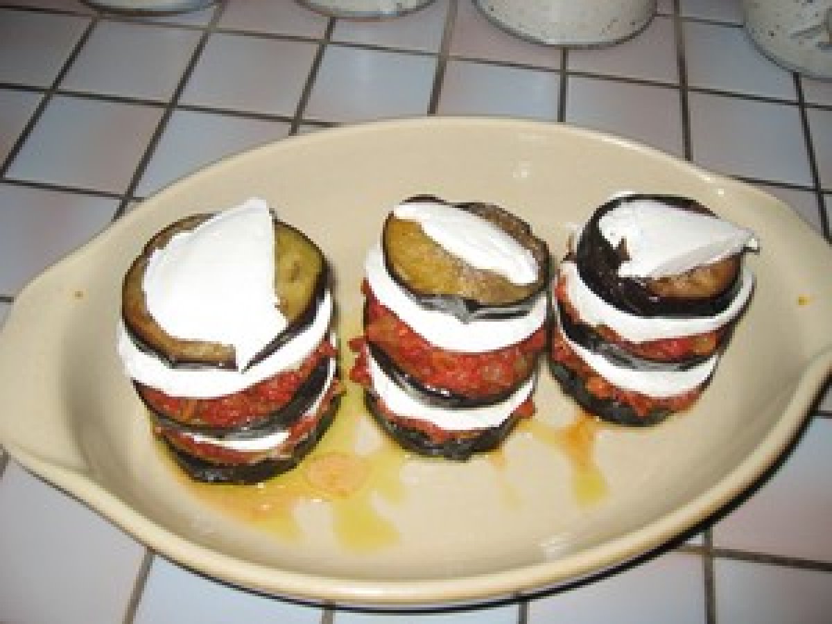 Millefeuille d'aubergines à la tomate et à la mozzarella
