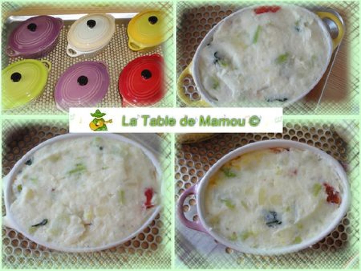 Mini cocotte purée et merlu votez maintenant Platmoyen1 h 5 m Envoyer cette recette à un ami Imprimer cette page Poser une question à l'auteur Publier votre photo de cette recette Ingrédients 4 6 pommes de terre, 2 grosses tête de brocolis pour avoir de belles tiges, 1/2 chou fleur, 2 grosses tomates, 1 échalote, 3 filet de merlu blanc, Huile d'olive, sel, poivre du moulin, Épices pour poisson Quai Sud, 100 g de fromage frais à tartiner.