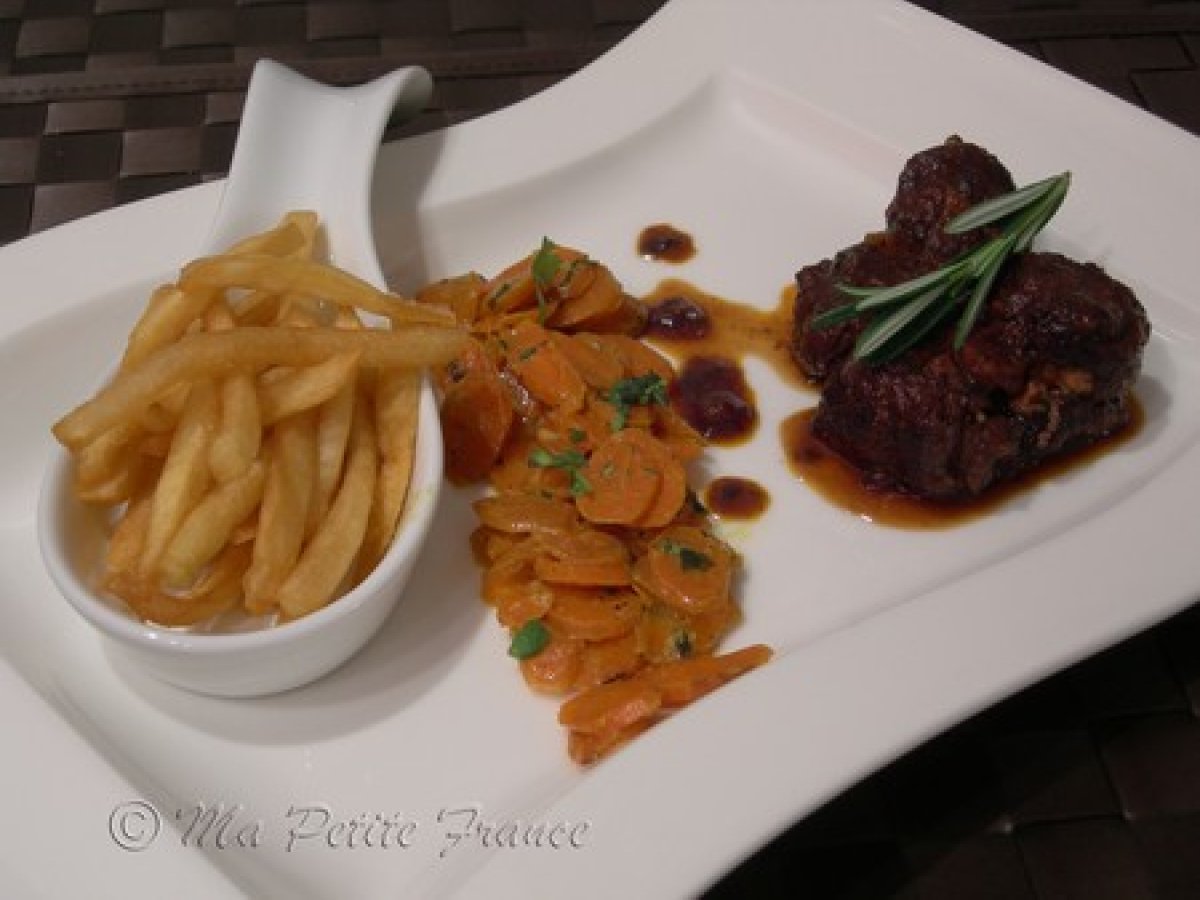 Mini-roulades de boeuf, carottes à la coriandre et frites
