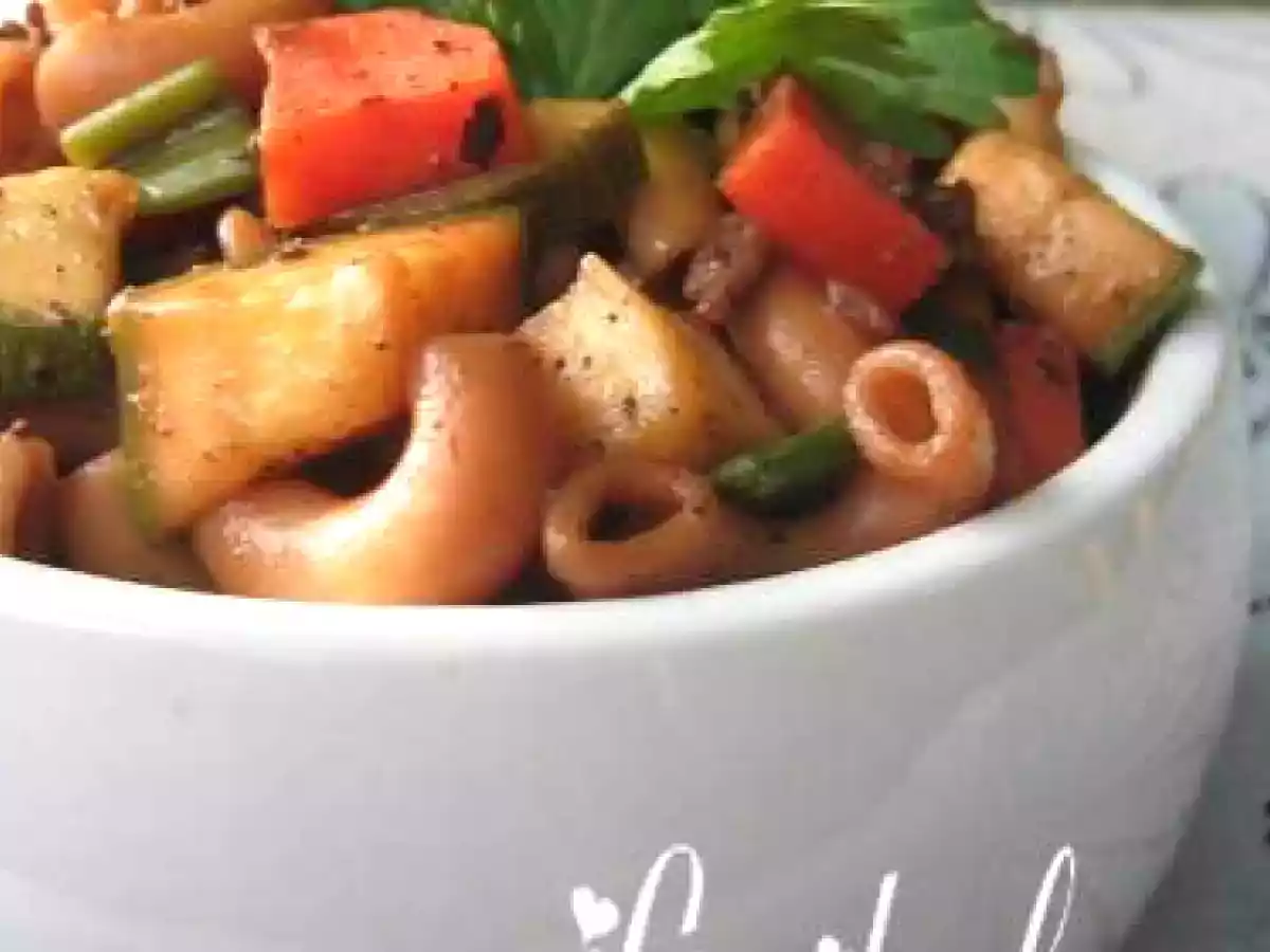 Ajouter les macaronis cuits et mélanger le tout, ajouter au goût de la sauce Soya et bien mélanger.