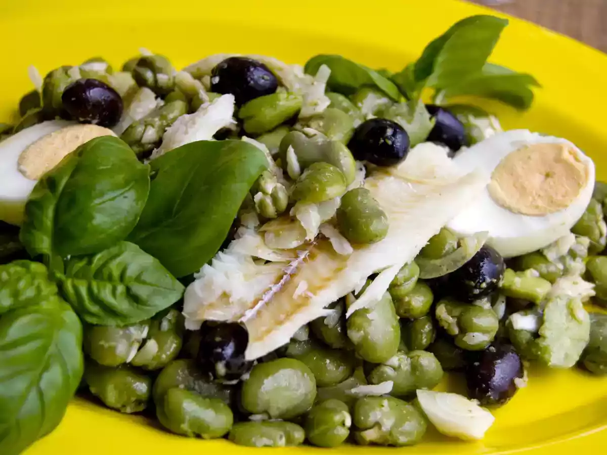 Morue (bacalhau) aux fèves Platmoyen22 min Envoyer cette recette à un ami Imprimer cette page Poser une question à l'auteur Publier votre photo de cette recette Ingrédients 3 400 g de morue partiellement desséchée 800 g de fèves congelées 2 cuil à soupe de pesto préparé 3 cuil à soupe dhuile dolive 3 cuil à soupe de vinaigre 4 gousses dail poivre du moulin une poignée dolives 4 ufs durs