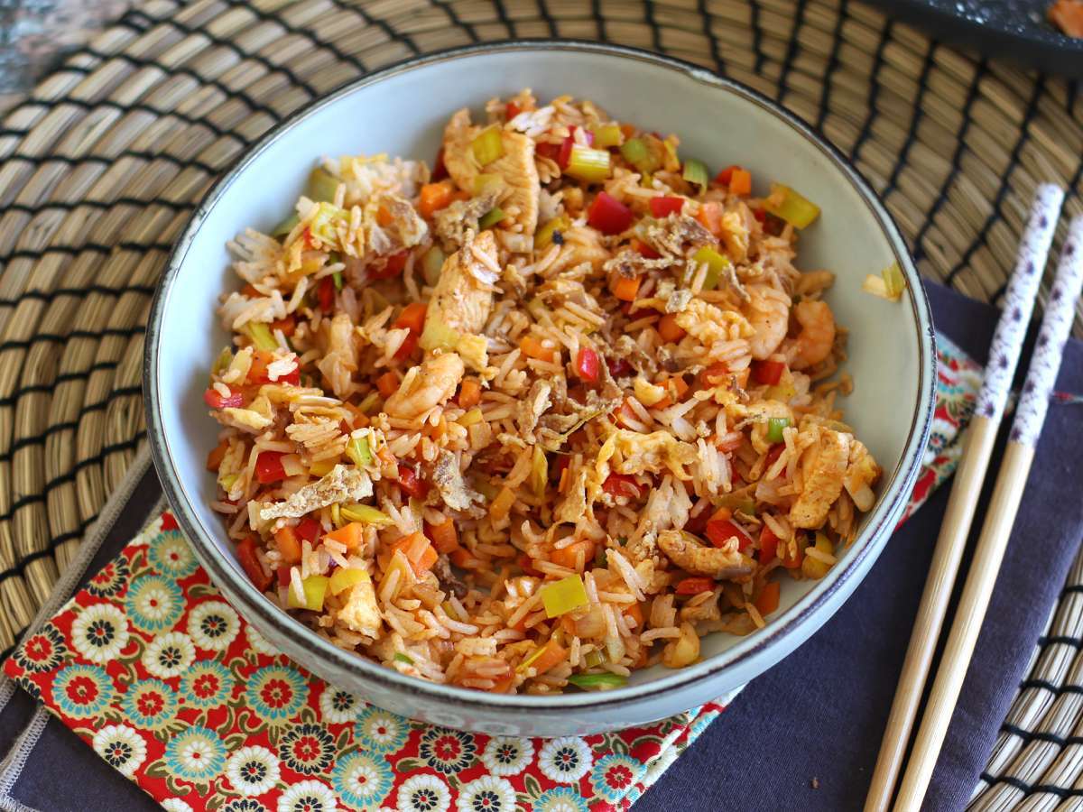 Effectivement, ici le riz est mélangé aux œufs et légumes sans être frit à sec, mais le piment de Cayenne apporte bien le piquant. Le plat reste savoureux grâce aux épices, sauce soja et concentré de tomate. Un délice relevé garanti !
