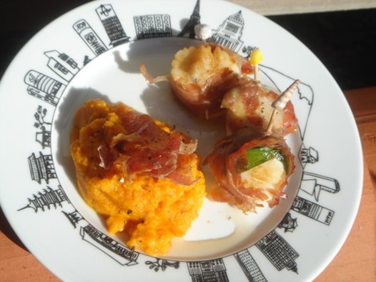 Noix de saint jacques en robe de jambon de bayonne et flambées au wisky !
