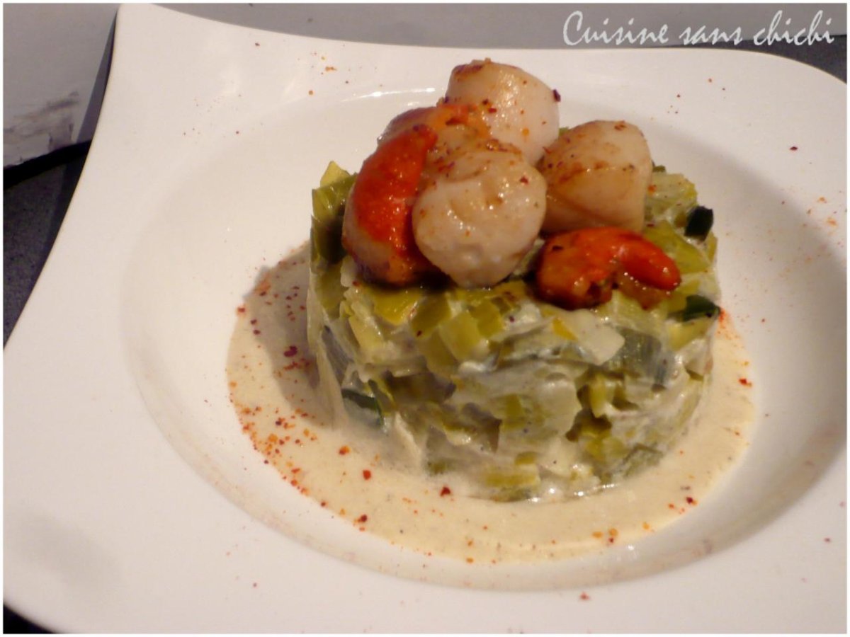 Noix de saint jacques poêlées sur fondue de poireaux.