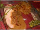 Noix de veau & foie gras, chutney de mangue ... votez maintenant PrécédentSuivant Platfacile2 jours 17 h 40 m Envoyer cette recette à un ami Imprimer cette page Poser une question à l'auteur Publier votre photo de cette recette Ingrédients 4 Pour la Viande: Rôti de Veau non bardé, pris dans la Noix, entre 600 et 700g 3 gousses d'Ail écrasées Sel et Poivre 4 Escalopes de Foie gras frais de Canard. Pour le Jus truffé: 40 cl de Fond de Veau goûteux 5 cl de Jus de Truffes au Madère Pour le Chutney : 1 Mangue bien mûre 3 cl de Vinaigre de Vin d'Ananas 3 cl de Vinaigre de Riz 3 cuillères à café de mélange d'Épices 1 gousse d'Ail dégermée Facultatif: noisette de Wasabi Pour la Mousseline: 1 courge Butternut, QS Bouillon de Veau, 2 Racines Persil moyennes, QS Huile d'Olive extra vierge.