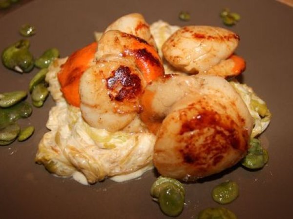 Noix saint jacques poêlées sur lit de crème de poireaux et fèves votez maintenant PrécédentSuivant Platfacile45 min Envoyer cette recette à un ami Imprimer cette page Poser une question à l'auteur Publier votre photo de cette recette Ingrédients 2 150 g de poireaux par personne 4 noix de Saint Jacques Quelques fèves vertes Sel poivre beurre huile et vinaigre balsamique.