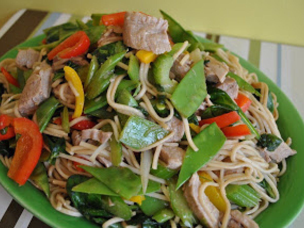 Nouilles au porc à l'asiatique votez maintenant Platfacile50 min Envoyer cette recette à un ami Imprimer cette page Poser une question à l'auteur Publier votre photo de cette recette Ingrédients 6 1 cuillère à soupe (15 ml) d'huile de sésame non grillé 1/4 de tasse (60 ml) de bouillon de poulet 1 cuillère à soupe (15 ml) de sauce soya 1 tasse (250 ml) de restes de filets de porc cuits, coupés en lanières* 1 tasse (250 ml) de restes de nouilles chinoises aux légumes* 1 tasse (250 ml) de de bébés épinards 1 cuillère à soupe (15 ml) de graines de sésames rôtis 1 oignon vert émincé Pour les filets de porc : 3 filets de porc de 340 g (3/4 lb) chacun 2 cuillères à soupe (30 ml) d'huile de canola 2 cuillères à thé (10 ml) d'ail haché 2 cuillères à soupe (30 ml) de gingembre haché 1/2 tasse (125 ml) de sirop d'érable 1/2 tasse (125 ml) bouillon de poulet Sel poivre au goût Pour les nouilles chinoises : 450 g de nouilles chinoises 2 cuillères à soupe (30 ml) d'huile de sésame non grillé 3 branches de céleri émincées 1 oignon émincé 1 poivron jaune émincé 1 poivron rouge émincé 30 pois mange-tout émincés
