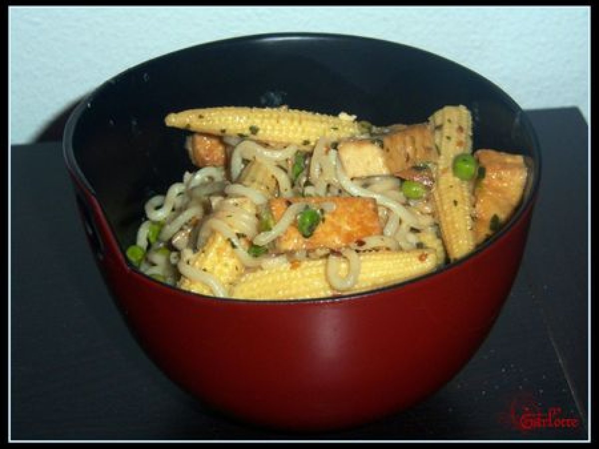 Nouilles chinoises au tofu et à la sauce coco-gingembre