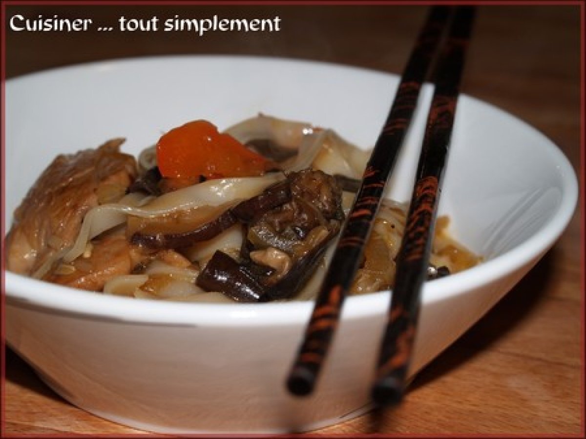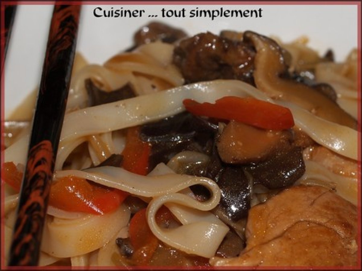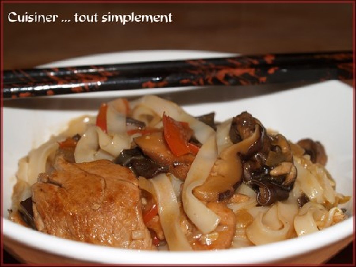 Nouilles de riz sautées ... au wok PrécédentSuivant Platfacile45 min710 Kcal Envoyer cette recette à un ami Imprimer cette page Poser une question à l'auteur Publier votre photo de cette recette Voici une recette bien facile à faire et appétissant! Ingrédients 4 370 g de nouilles de riz séchées 100 g de pousses de Soja 25 g de champignons noirs déshydratés 400 g de porc 1 poivron rouge 1 oignon 1 cuillère à soupe d'huile d'arachide 1 gousse d'ail 2 cuillère à café de Maïzena 60 ml de sauce de Soja 1 cuillère à soupe de Nuoc Mâm 300 ml de bouillon de volaille Coût estimé: 5.86Euros€ (1.46€/part)