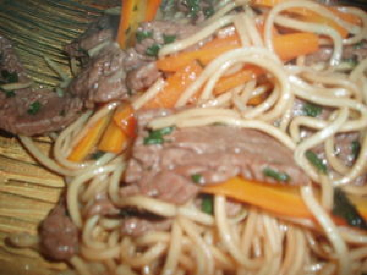 Nouilles sauté au boeuf, carottes et basilic thaï Platfacile23 min240 Kcal Envoyer cette recette à un ami Imprimer cette page Poser une question à l'auteur Publier votre photo de cette recette Ingrédients 4 250 g de nouilles chinoises 400 g de rumsteack Carré de Boeuf 6 cuillères à soupe de sauce Sukiyaki 1 bouquet de basilic thaï 3 belles carottes Coût estimé: 8.66Euros€ (2.16€/part)