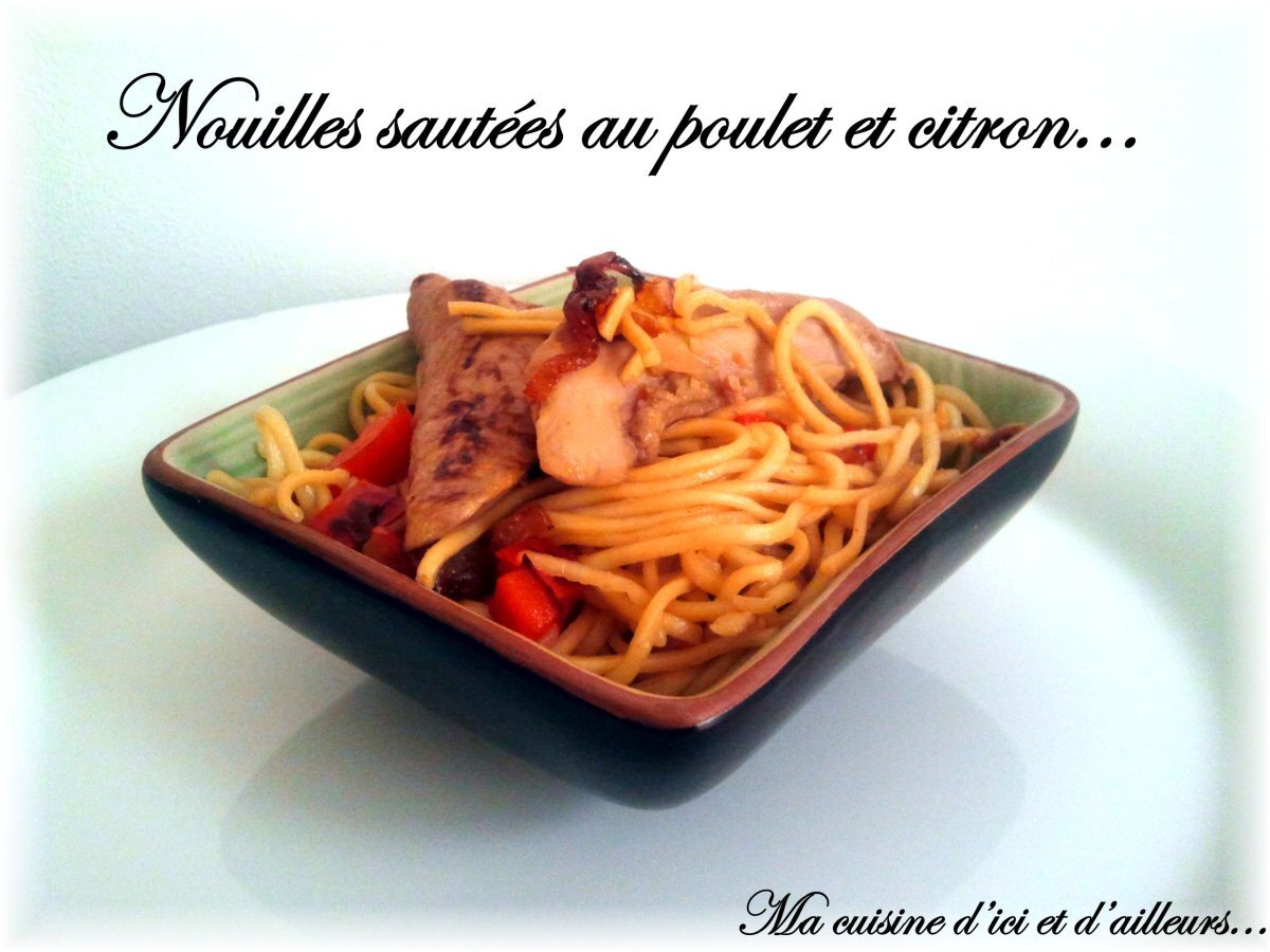 Nouilles sautées au poulet et au citron Platfacile40 min344 Kcal Envoyer cette recette à un ami Imprimer cette page Poser une question à l'auteur Publier votre photo de cette recette Ingrédients 4 4 blancs de poulet 1 poivron rouge 2 oignons 2 gousses d'ail 1 cuillère à café de gingembre 2 citrons 200 gr de nouilles chinoises 3 cuillères à soupe de miel 1 cuillère à café de sucre en poudre 2 cuillères à soupe d'huile 1 cuillère à café de piment en poudre sel Coût estimé: 8.81Euros€ (2.2€/part)