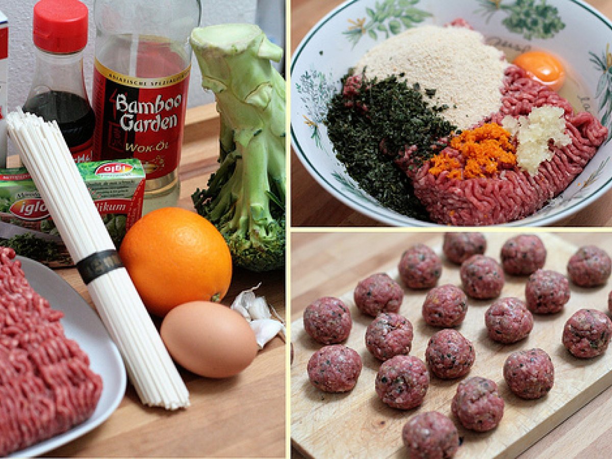 Nouilles udon au brocoli et boulettes de boeuf votez maintenant PrécédentSuivant Platfacile25 min Envoyer cette recette à un ami Imprimer cette page Poser une question à l'auteur Publier votre photo de cette recette Ingrédients 2 200 g de nouilles Udon 1 brocoli 350 g de boeuf haché 4 cuillères à soupe de chapelure 2 gousses d'ail 1 oeuf 1 orange feuilles de basilic fraîches (ou à défaut surgelées) sel poivre huile pour wok sauce soja
