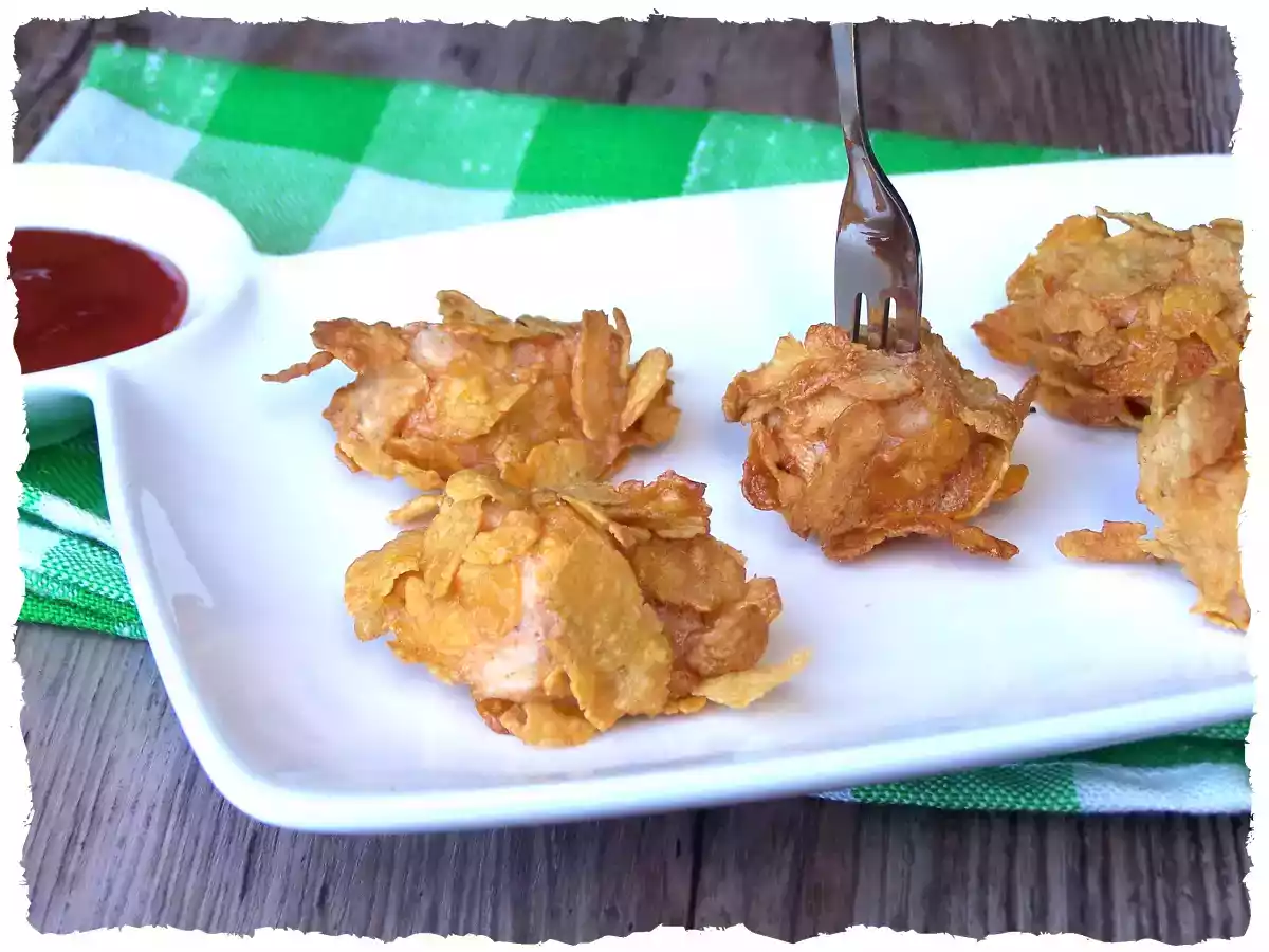 Nuggets de poulet aux corn flakes. Platfacile40 min249 Kcal Envoyer cette recette à un ami Imprimer cette page Poser une question à l'auteur Publier votre photo de cette recette Ingrédients 4 500g de blanc de poulet 3 blancs d'oeuf 150g de pétale de maïs nature type cron flakes 50g de farine de blé 1 c à soupe de fleurs de thym 1 c à café de paprika sel fin et poivre du moulin Coût estimé: 7.11Euros€ (1.78€/part)