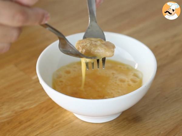Passez la boule formée dans la farine, puis dans les œufs battus en omelette. Enfin, passez les dans la chapelure afin qu'ils soient bien recouverts.