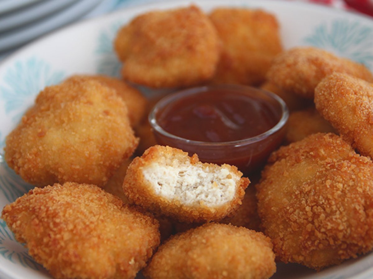 Envie de poulet ? Rendez-le croustillant en réalisant des nuggets faites maison ! Une recette anti-gaspillage parfaite lorsqu'on souhaite utiliser ses restes de poulet du dimanche ou que des escalopes traînent dans le frigo ! Faciles à faire, vous n'aurez qu'à mixer vos ingrédients, à les tremper dans la panure et à les faire cuire à la friteuse pour un résultat croustillant à l'extérieur et fondant à l'intérieur. Recette à manger impérativement avec les doigts bien sûr !
