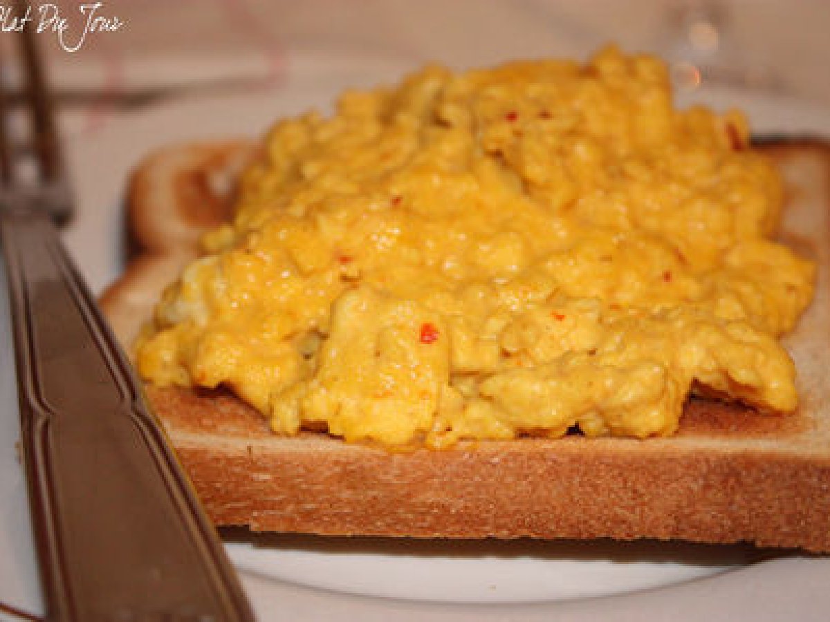 Oeufs brouillés épicés PrécédentSuivant Platfacile15 min Envoyer cette recette à un ami Imprimer cette page Poser une question à l'auteur Publier votre photo de cette recette Avec une salade, ces tartines se prêtent délicieusement à un repas pour le soir. Ingrédients 2 4 oeufs 150 g de crème légère 1 pincée de safran 2 cuillère à soupe s de beurre 1/2 cuillère à café de cumin en poudre de 1/2 cuillère à café à 1 cuillère à café de harissa 1 cuillère à café de coriandre en poudre 2 tranches de pain de mie grillées sel poivre