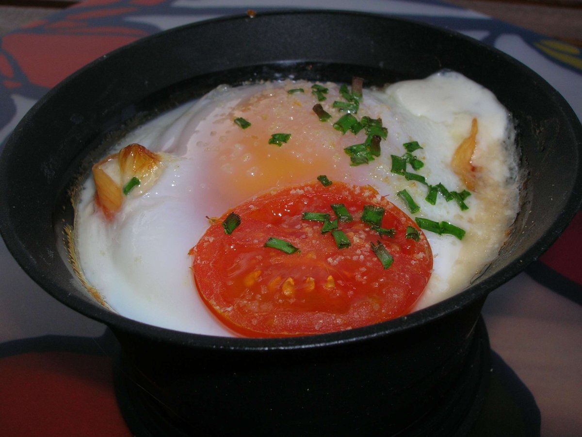 Oeufs en cocotte, serrano champignons Platfacile28 min Envoyer cette recette à un ami Imprimer cette page Poser une question à l'auteur Publier votre photo de cette recette Ingrédients 4 4 fines tranches de jambon serrano 4 gros oeufs très frais 4 cuillers à soupe de crème fraiche semi-épaisse Quelques brins de ciboulette 2 poignées de champignons de Paris frais 2 tomates cerises 1 gousse d'ail Sel poivre du moulin Parmesan (facultatif)