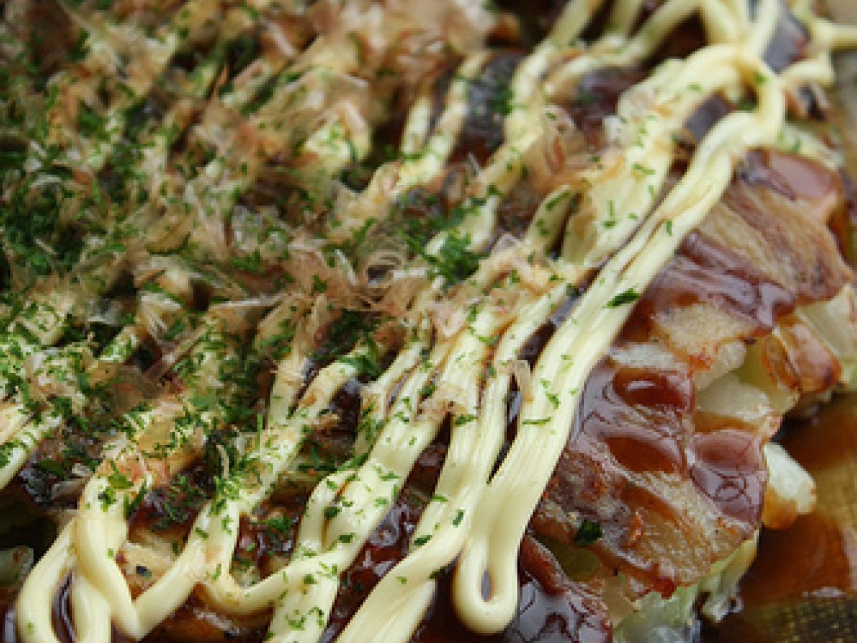 Okonomiyaki au porc- galette aux choux japonais (façon osaka) Platfacile35 min Envoyer cette recette à un ami Imprimer cette page Poser une question à l'auteur Publier votre photo de cette recette Ingrédients 2 1 oeuf 100 ml d'eau 1/3 cuillère à café de dashi 100 g farine 1/2 cuillère à soupe sel 200 à 250 g de chou frisé 1/3 poireau 4, 5 tranches de porc coupé finement sauce pour okonomiyaki ou pour tonkatsu mayonnaise (facultatif) bonite séchée et algue vert en poudre, aonori (facultatifs)