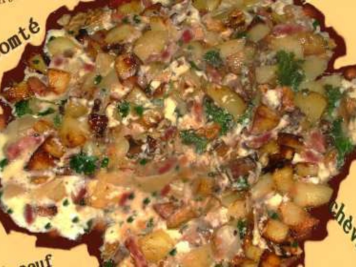 Omelette au lait de chèvre et noix avec patates aux lardons Platfacile20 min Envoyer cette recette à un ami Imprimer cette page Poser une question à l'auteur Publier votre photo de cette recette Ingrédients 2 1 poignée de persil frais 4 pommes de terre douces (taille moyenne) 1 ail 1 petite échalote ½ oignon Muscade Sel Poivre 1 poignée de noix 1 barquette de lardons 1 peu de fromage (du chèvre serait bienvenu, mais à défaut prenez du Comté et faites lomelette avec le lait qui vous convient le mieux !) 1 uf Lait de chèvre demi-écrémé