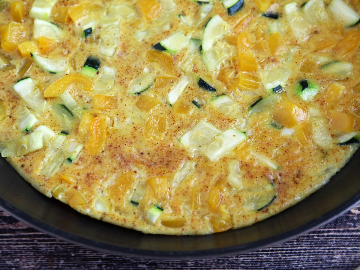 Pour un repas simple et garni de légumes, vous aurez besoin de 3 ingrédients : du poivron, de la courgette et des oeufs ! Avec, préparez-vous une omelette facilement qu'il ne vous restera plus qu'à accompagner d'une salade composée ;-)