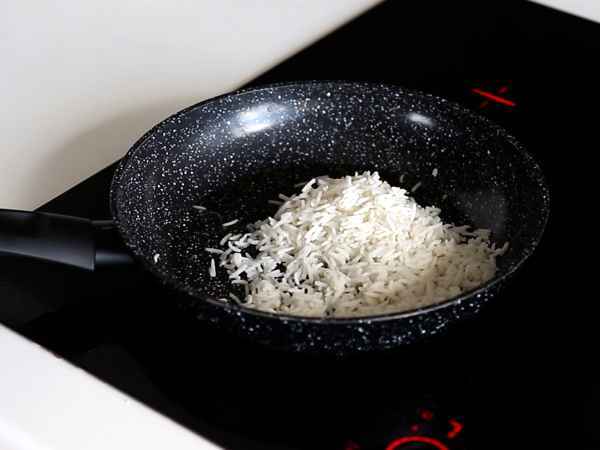 Pour un riz croustillant, utilisez du riz basmati cuit la veille et bien refroidi. Faites-le revenir dans une poêle chaude avec un peu d'huile neutre sans trop remuer pour permettre la formation d'une croûte dorée.