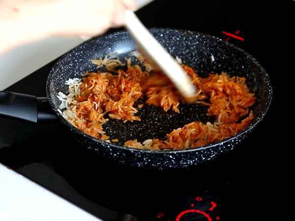 Comment obtenir un riz bien croustillant pour cette omelette?