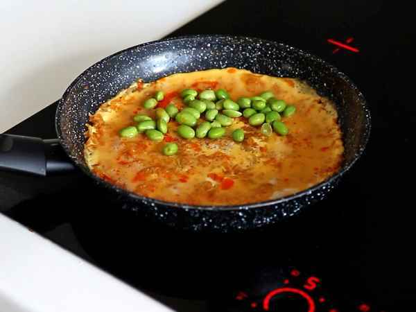 Ajouter les fèves de soja et plier délicatement l'omelette croustillante.