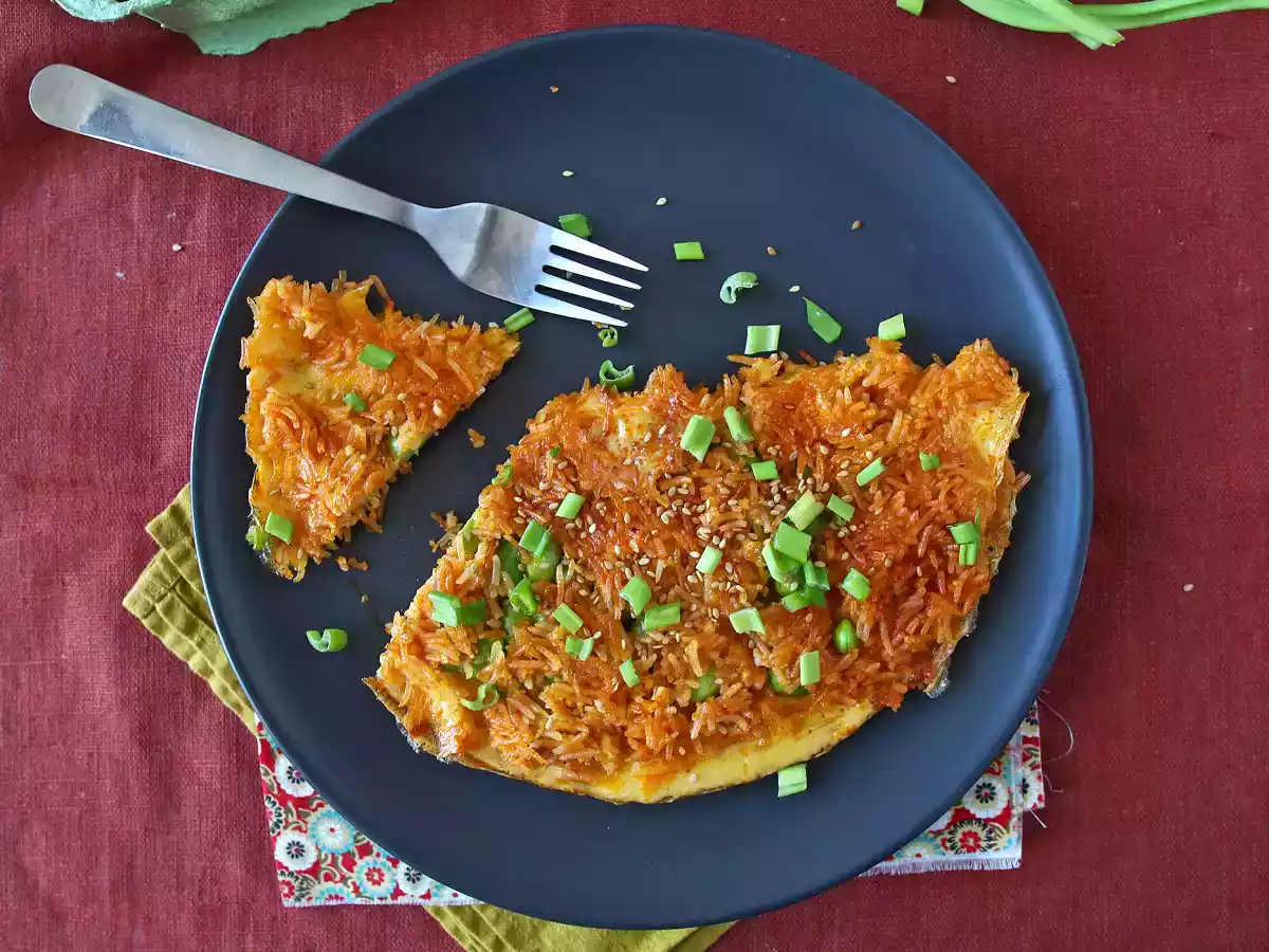 Omelette au riz croustillant et fèves de soja, un repas épicé rapide et anti-gaspillage!