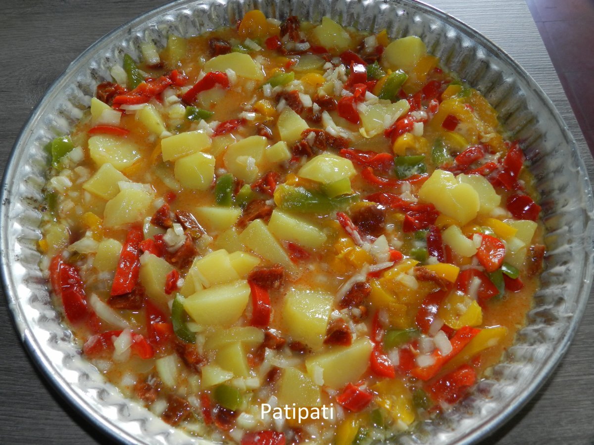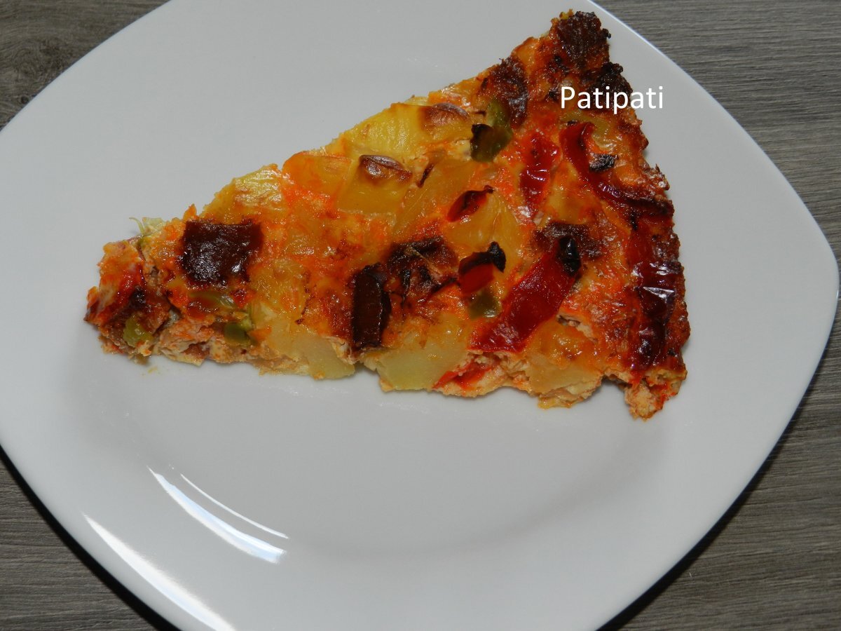 Omelette aux pomme de terre-chorizo-poivrons en forme de tarte