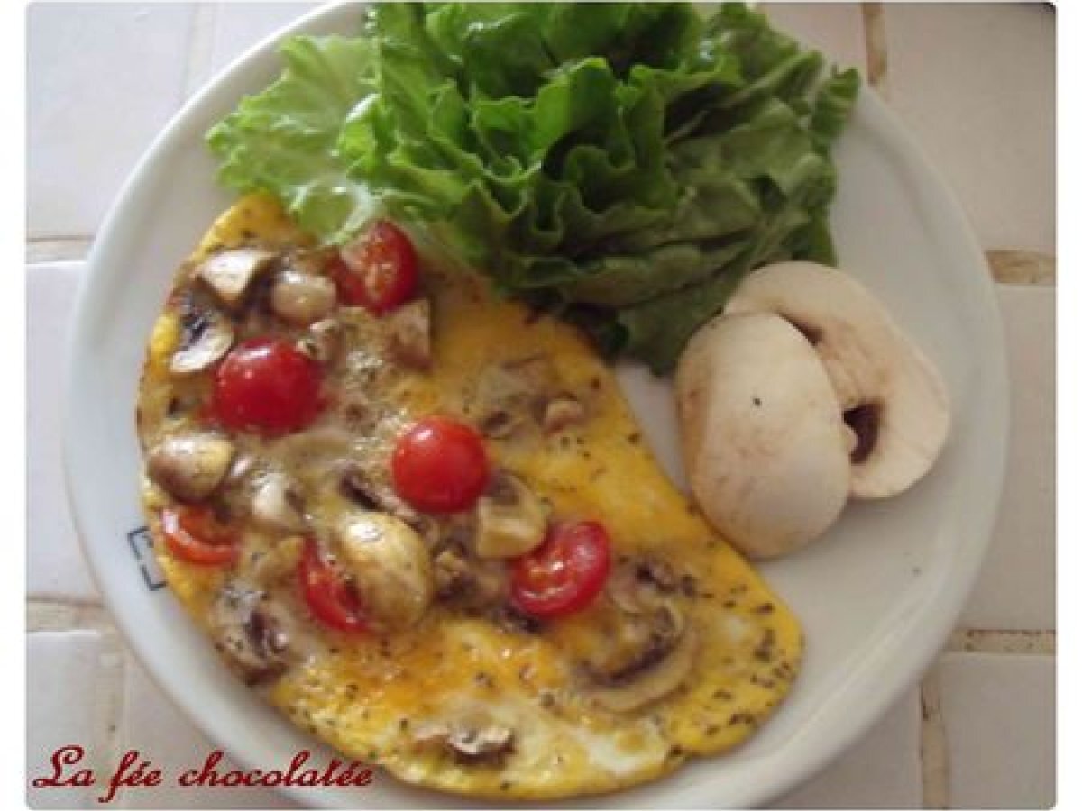 Omelette aux tomates cerises et champignons Platfacile15 min175 Kcal Envoyer cette recette à un ami Imprimer cette page Poser une question à l'auteur Publier votre photo de cette recette Ingrédients 1 2 oeufs 3 petits champignons 3 tomates cerises poivre sel basilic Coût estimé: 1.1Euros€ (1.1€/part)