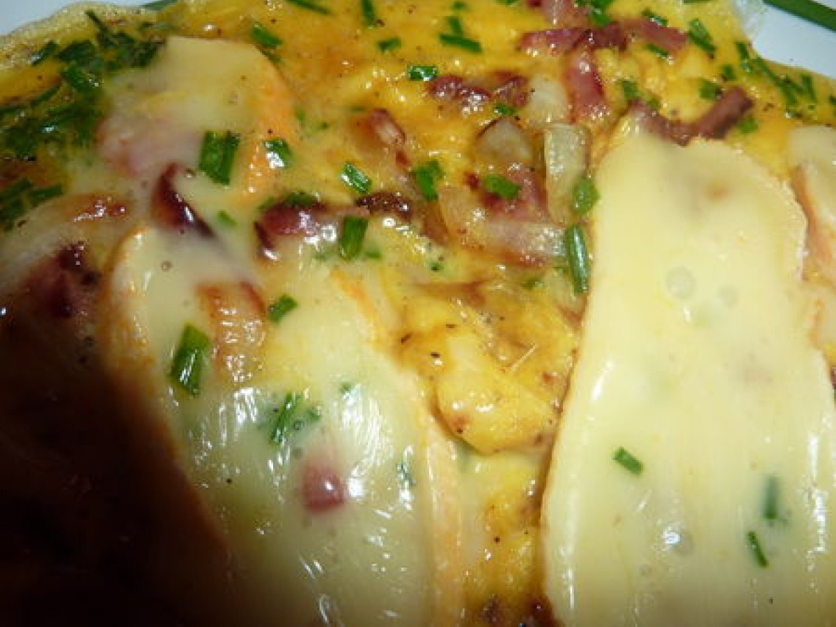 Omelette façon tartiflette votez maintenant PrécédentSuivant Platfacile35 min Envoyer cette recette à un ami Imprimer cette page Poser une question à l'auteur Publier votre photo de cette recette Ingrédients 1 2 oeufs 70 g d'allumettes fumées 1/2 oignon une vingtaine de tiges de ciboulette 1 cuillerée à soupe de crème fraîche liquide 4 belles tranches de reblochon poivre