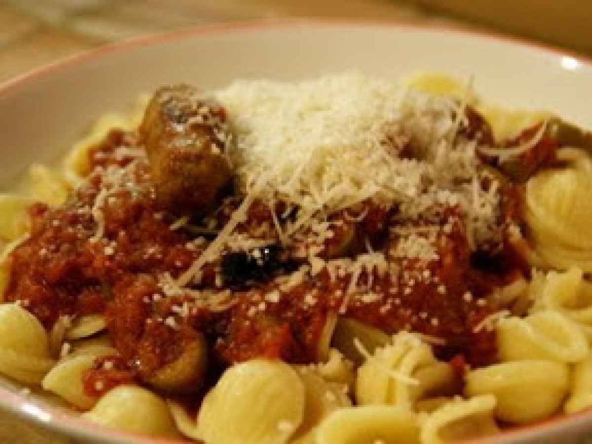 Orecchiette et saucisses "puttanesca" votez maintenant Platfacile30 min Envoyer cette recette à un ami Imprimer cette page Poser une question à l'auteur Publier votre photo de cette recette Ingrédients 4 500 gr de saucisse italienne 700 gr de passata (purée) de tomates 125 gr d'olives noires dénoyautées 1 petite boîte de filets d'anchois à l'huile d'olive 1 gros oignon 3 gousses d'aïl 1 verre de vin rouge huile d'olive sel, poivre, piment (doux ou fort, selon le goût) 500 gr d'orecchiette parmesan frais râpé