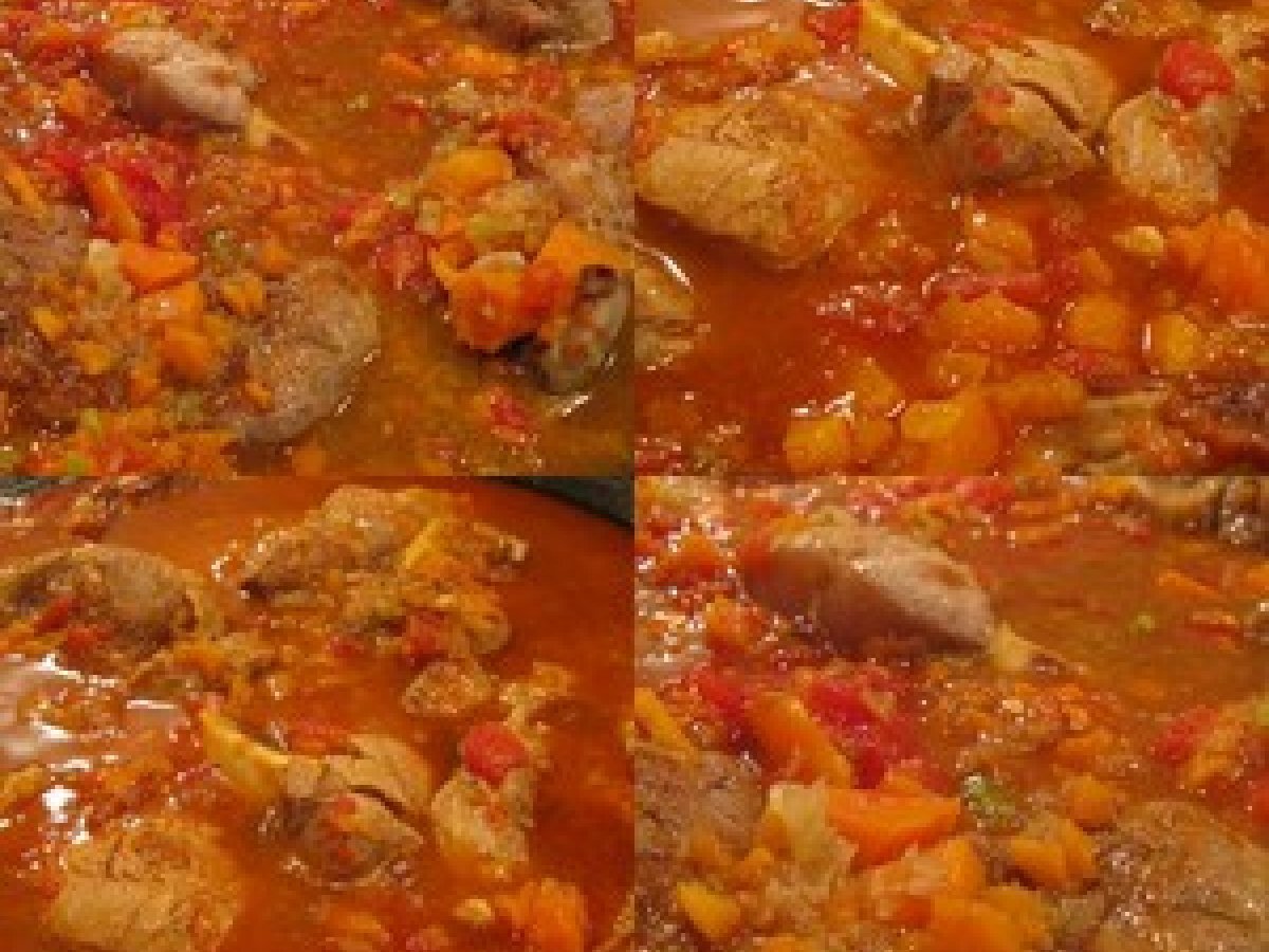 - Ajoutez la viande, mouillez avec le vin blanc, salez, poivrez et laissez réduire le jus toujours sur feu doux. Ajoutez les tomates pelées, épépinées et taillées en cube.