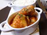 Voici un plat savoureux, qui est très raisonnable en calories. La sauce est extra. Très bon et parfum excellent. On peut bien sûr adapter cette recette avec un poisson moins cher que la lotte.